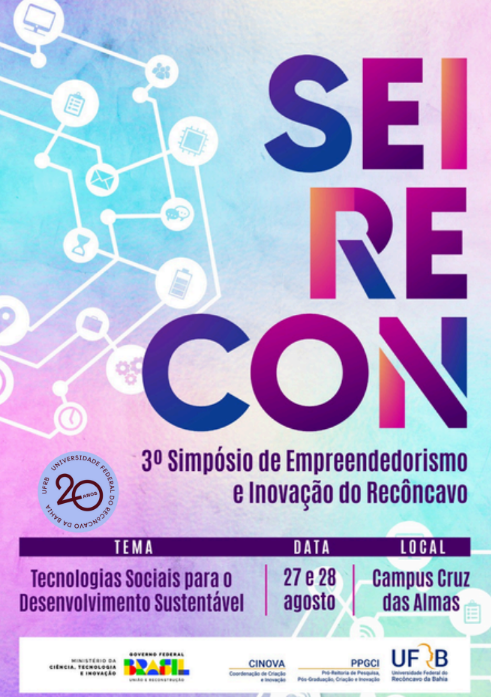 O III SEIRECON integra as ações da UFRB para o fortalecimento do ecossistema de inovação regional e é promovido pela Coordenação de Criação e Inovação (CINOVA), vinculada à Pró-Reitoria de Pesquisa, Pós-Graduação, Criação eInovação (PPGCI/UFRB).