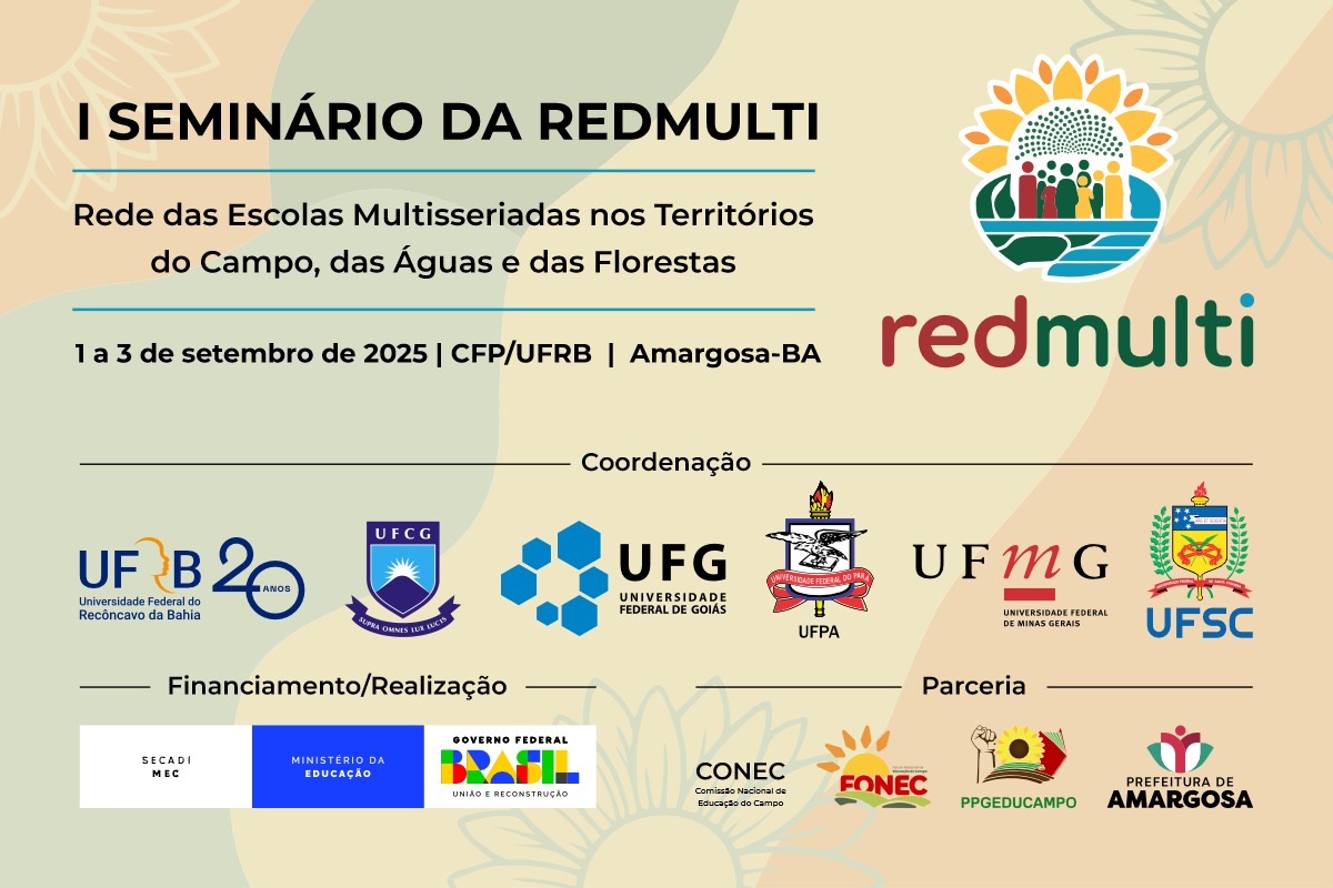 I SEMINÁRIO DA REDMULTI – Rede das Escolas Multisseriadas nos Territórios do Campo, das Águas e das Florestas, ocorrerá no Centro de Formação de Professores (CFP) da Universidade Federal do Recôncavo da Bahia (UFRB), no município de Amargosa entre os dias 1 e 3 de setembro de 2025. O evento é aberto ao público e inteiramente gratuito.