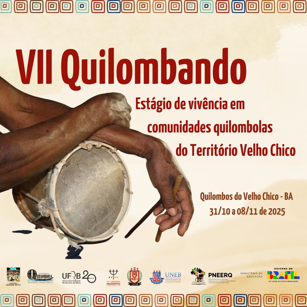 Entre os dias 31 de outubro a 8 de novembro de 2025, acontecerá o VII Quilombando – Estágio de Vivência em Comunidades Quilombolas do Território Velho Chico.