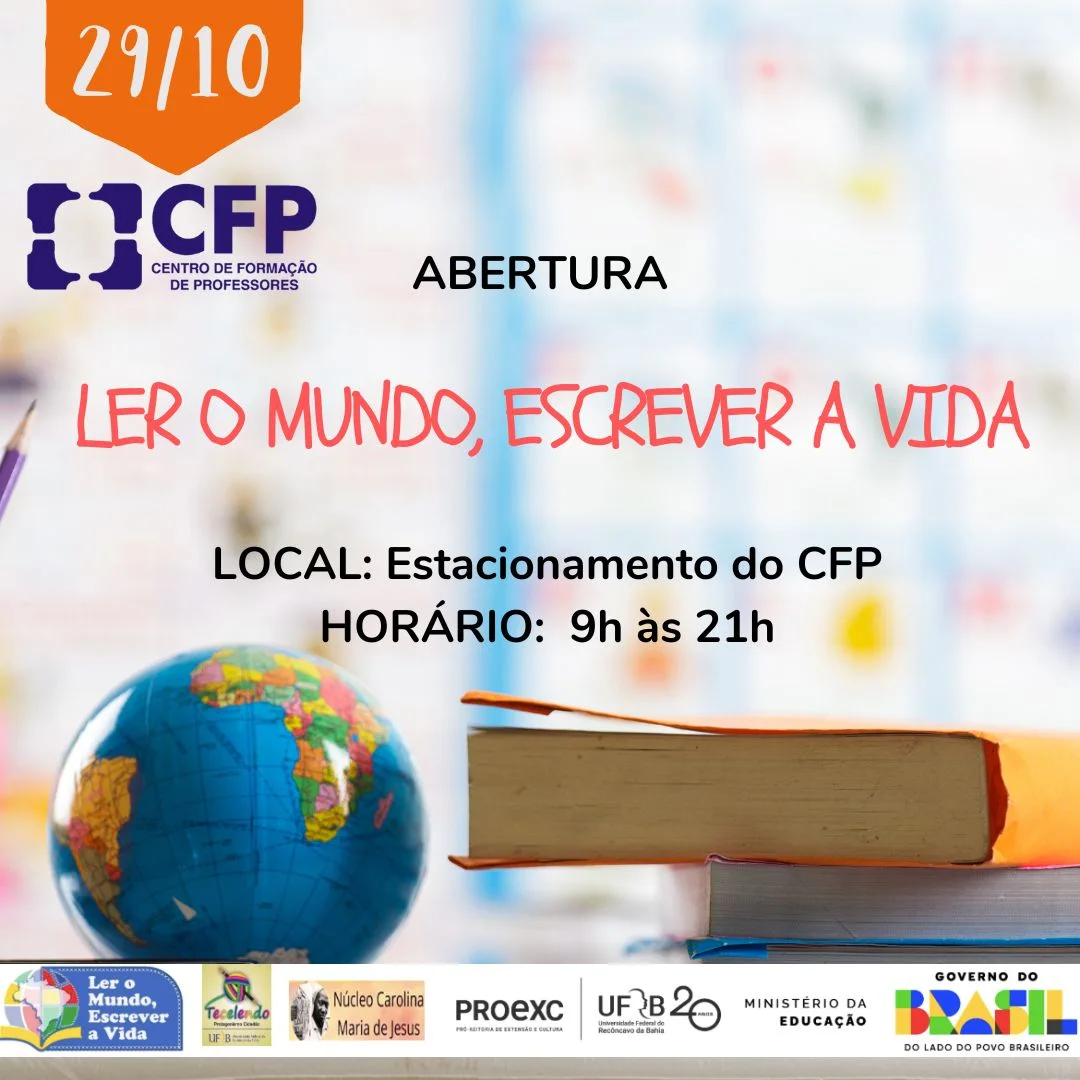 É com imensa alegria que convidamos toda a comunidade para a abertura do projeto Ler o Mundo, Escrever a Vida — uma iniciativa que integra políticas públicas voltadas à alfabetização de pessoas não escolarizadas, com atuação prioritária na Bahia e no estado de Minas Gerais. O projeto “Ler o Mundo, Escrever a Vida” fundamenta-se na Educação Popular, na perspectiva freireana e nos Movimentos Sociais, promovendo transformação individual e coletiva por meio da alfabetização. Valoriza os debates sobre raça e gênero, articulando educação, trabalho e geração de renda, e fortalece a prática pedagógica com base no Método Tecelendo, que une aprendizagem, cultura e desenvolvimento comunitário.No próximo dia 29 de outubro, no estacionamento do Centro de Formação de Professores acontecerá a abertura das atividades do projeto.Com muita cultura, diálogo de saberes e troca de experiências, sintam-se convidad@s e venham ler o mundo junto com a gente!