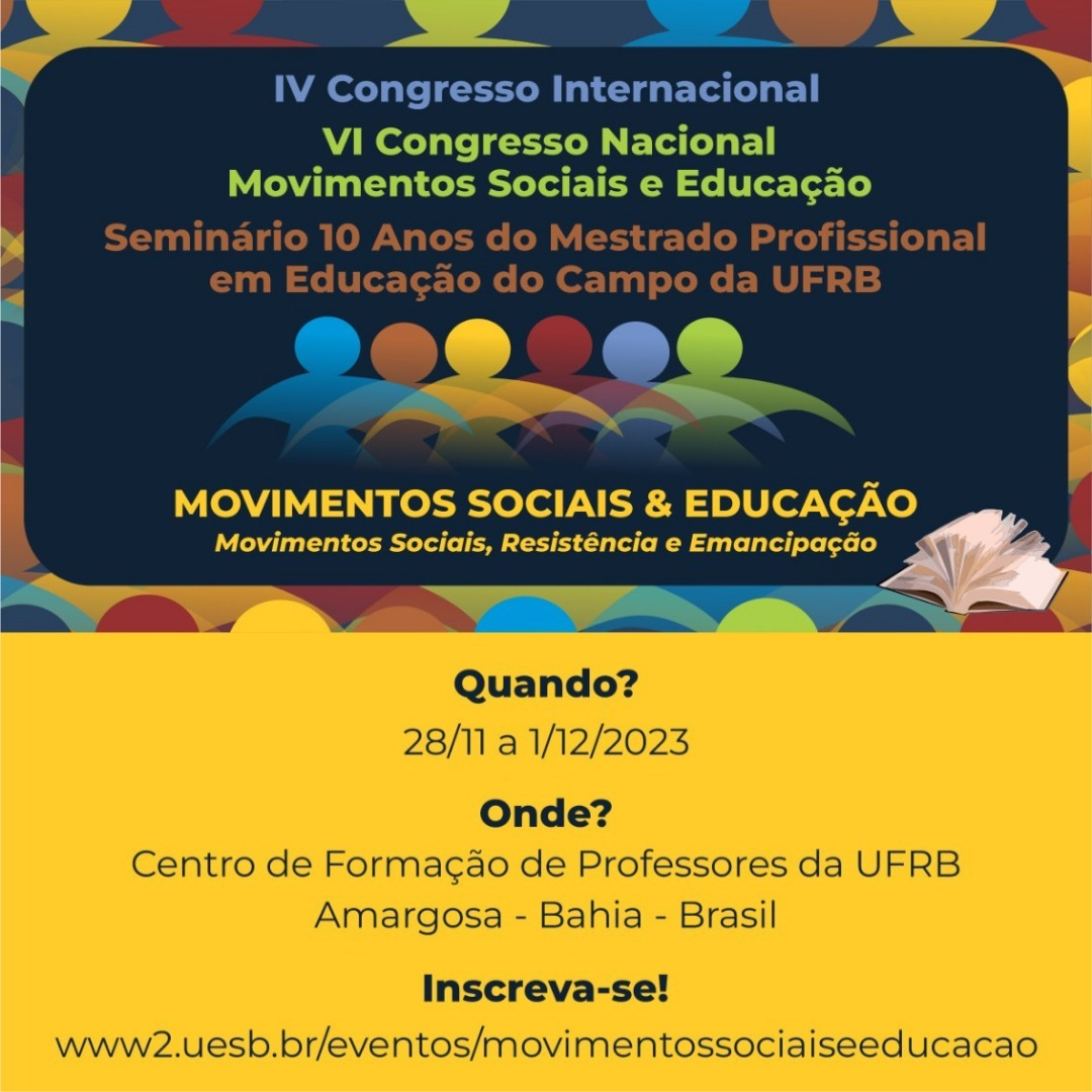 Para mais informações, acesse o site do evento: www2.uesb.br/eventos/movimentossociaiseeducacao/