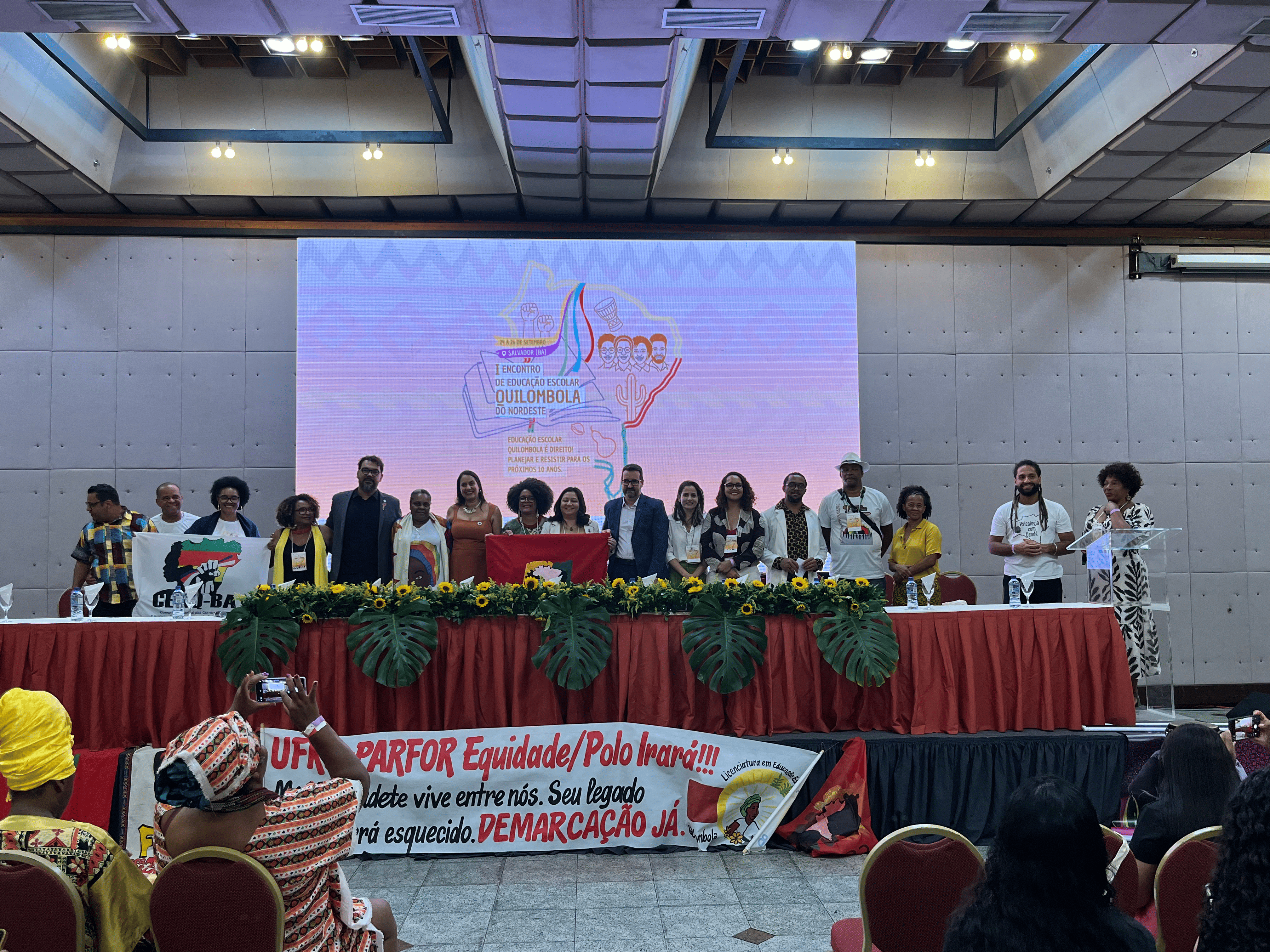 O I Encontro Regional de Educação Escolar Quilombola - Nordeste teve como objetivo discutir a Educação Escolar Quilombola no Nordeste e produzir formas de ação coletiva por e a partir do chão das escolas quilombolas e dos coletivos que pautam o tema. O I Encontro ocorre no processo de comemoração dos 30 anos da Carta do I Encontro Nacional de Comunidades Negras Rurais, ocorrido em Brasília, em 1995. A mesa de abertura contou com a presença de lideranças quilombolas nacionais, como Givânia Maria da Silva, Conselheira Nacional de Educação; José Ramos de Freitas.
